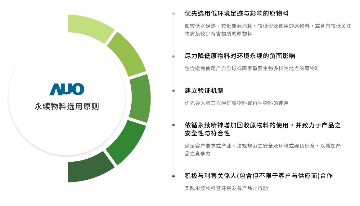 呼应永续产品愿景,选用低环境负荷与风险之原物料