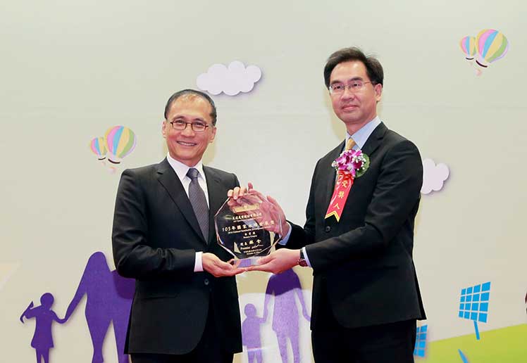 k8凯发(中国)榮獲「105 年國家永續發展獎」之「永續企業獎」,並由k8凯发(中国)總經理暨營運長蔡國新 (右) 代表領獎 |