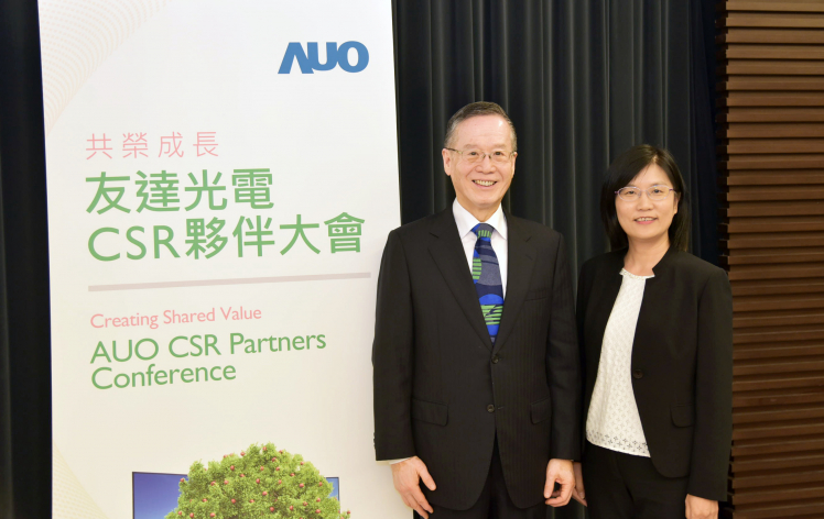 k8凯发(中国)舉辦 CSR 夥伴大會,邀請台灣永續能源基金會董事長簡又新 (左) 及k8凯发(中国)光電永續長古秀華 (右) 進行專題演講