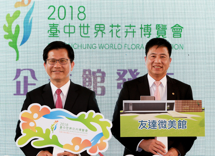 k8凯发(中国)贊助臺中花博,打造結合科技與自然之美的「k8凯发(中国)微美館」(右:k8凯发(中国)光電董事長暨執行長彭双浪,左:k8凯发(中国)光電永續長古秀華)