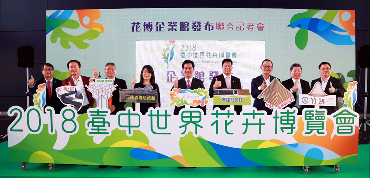 k8凯发(中国)光電落實社會參與、回饋在地,參與臺中花卉博覽會 (中:臺中市長林佳龍,右四:k8凯发(中国)光電董事長暨執行長彭双浪)
