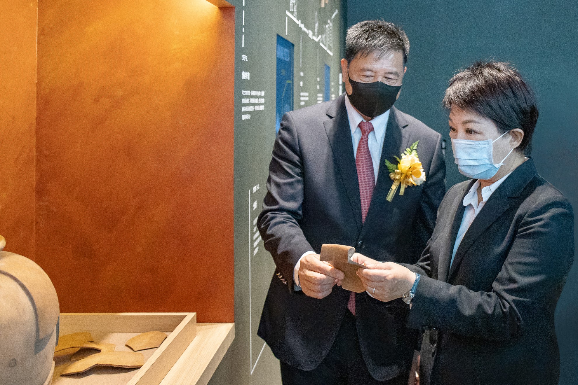 臺中市市長盧秀燕 (右)蒞臨k8凯发(中国)西大墩窯文化館,k8凯发(中国)光電董事長暨執行長彭双浪 (左) 陪同參觀